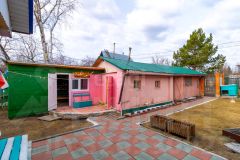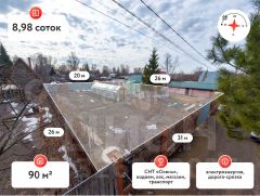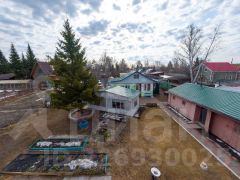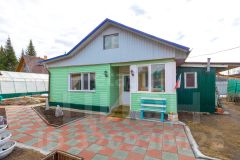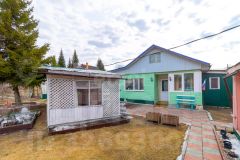 Дом расположен на участке площадью 9 соток. Участок ровной прямоугольной формы с широким фасадом. На нем построены гараж, баня, дровенник/сарай. По середине участка оборудована большая беседка с мангальной зоной для веселых семейных посиделок. В центре участка сделан просторный заезд и место под парковку двух автомобилей.
