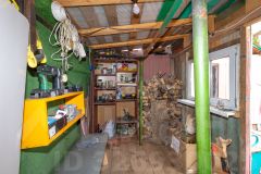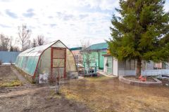 Огород заслуживает отдельных слов. Построена большая теплица 10*3 метров, по всему участку посажены различные кусты и деревья (вишня, смородина, груша, клубник, земляника, крыжовник). На зиму собственники укрываются от морозов. По лицевой части растет дикий виноград создавая ощущение зеленого забора из растений. Для полива огорода используется летний водопровод.