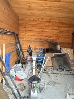 На территории поставлен сруб для бани и большой гараж совместно с сараем. Кухня-гостиная выполнена в интересной закругленной форме, что создаст уют и приятную атмосферу для общения и встречи гостей. В доме много окон индивидуальной, не стандартной формы.