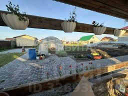 Все дорожки, подъездная и преддомовая площадки выложены брусчаткой 250 м2.