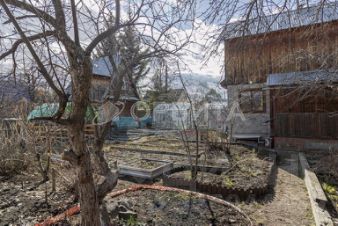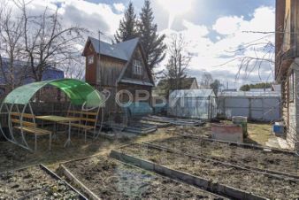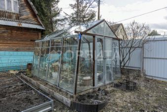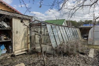 Деревянный двухэтажный дом, на участке есть 3 теплицы, летний водопровод. Из насаждений имеются яблони, вишни, малина, крыжовник, смородина.
