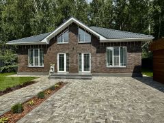 Фасад дома выполнен из керамического кирпича, произведённого в Калининграде, что не только красиво, но и долговечно. Зимой содержание дома обходится всего в 5-6 тысяч рублей, включая газ, воду и электричество. Во дворе и по периметру участка уложена стильная брусчатка коллекции "Хаски", а территория огорожена новым забором с откатными воротами.