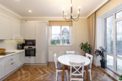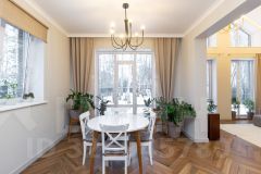 Потолки высотой 3 метра и впечатляющие 5,5 метров в гостиной создают ощущение простора и света. Каждая комната оснащена тёплым полом и радиаторами, а отопление осуществляется двухконтурным газовым котлом. Вода поступает из собственной скважины глубиной 44 метра с системой водоочистки, а канализация представлена септиком с переливом.