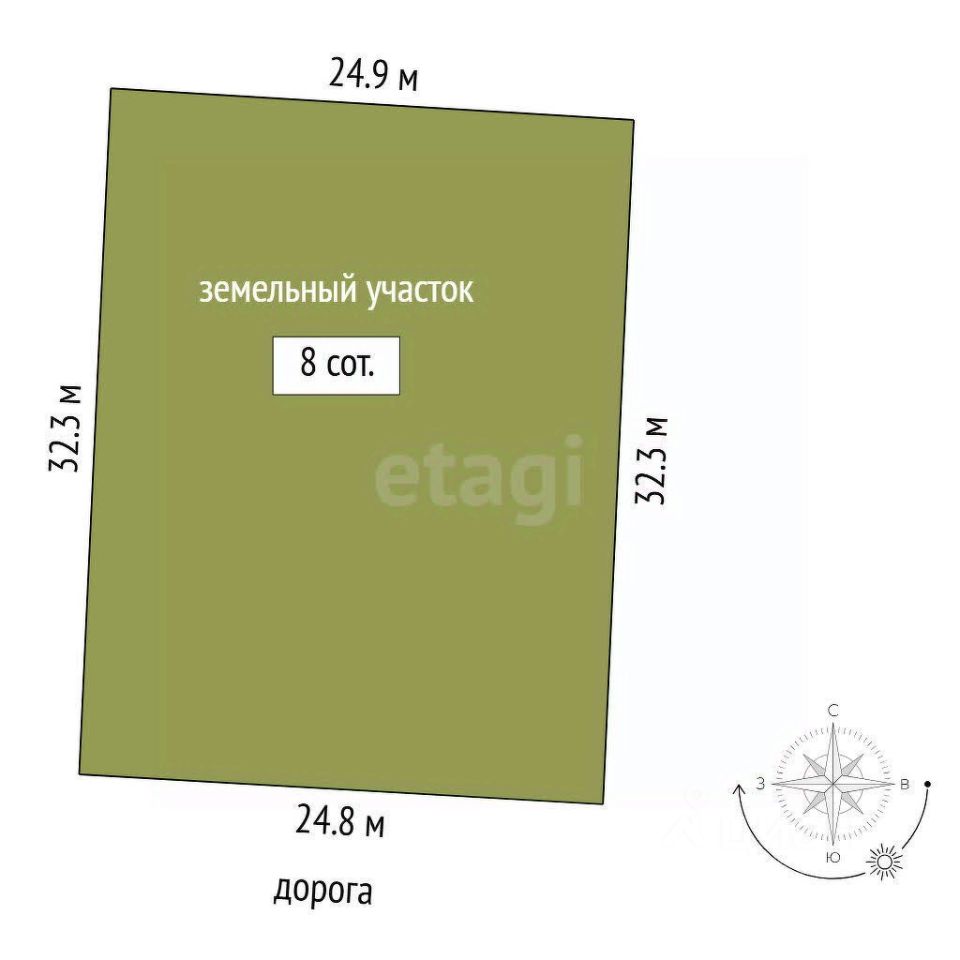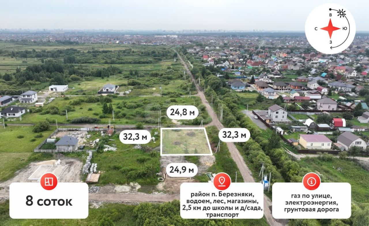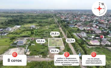 Земельный участок площадью 8 соток расположен в черте города Тюмени, в районе Березняки, в 800 метрах от асфальтированной дороги. Участок имеет ровный рельеф и угловое положение, что расширяет возможности планировки и строительства.