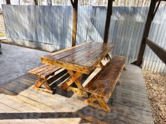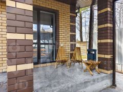 Стены из селикатного блока поревит , утеплены в 100мм и облицован дом желтым кирпичом с вставками из коричневого кирпича . Дом теплый , отопление в доме это система теплый водяной пол и дополнительно установлены радиаторы под окнами . В доме есть две спальни и просторная кухня-гостиная с выходом на террасу , так же совмещенный санузел и небольшая котельная .