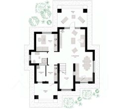 Авторский проект двухэтажного дома 184.4 м² на участке 9 соток искусно сочетает традиционную архитектуру с элементами модерна.