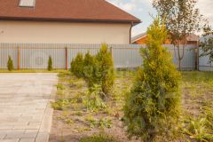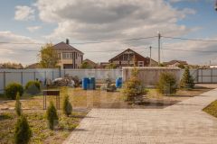 Площадь 10 соток: 28 м по фасадной части, 36 м в глубь. Участок правильной прямоугольной формы. Из насаждений 3 яблони, пионы, сирень, 3 грядки, ели, туи, сосны, земля подготовлена для рулонного газона. Коммуникации на участке: септик 2 кольца, переливной. Абиссинская скважина (грунтовые воды на уровне 3,5 м). Есть откатные ворота, для удобства вы можете установить мотор и у вас будут ворота с дистанционным открытием.