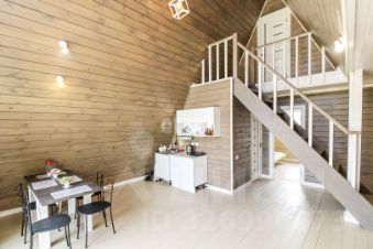 Экологически чистый,полностью из дерева, состоит из 3х изолированных комнат и кухни-гостиной.