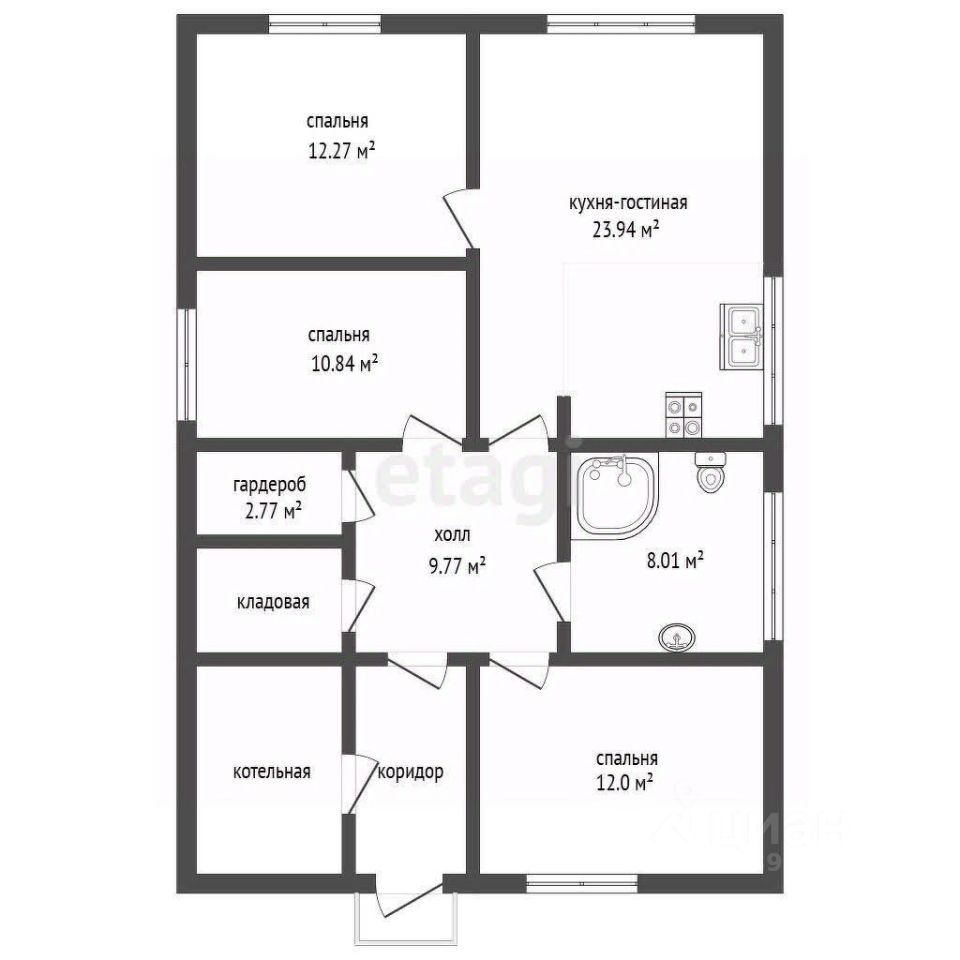 - 3 спальни (12,12,11 м2)