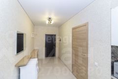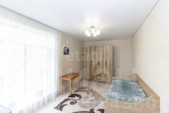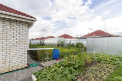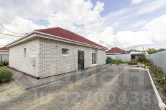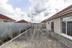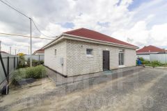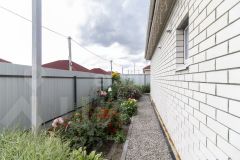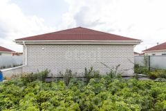 Фундамент: ленточный с залитой монолитной плитой, обеспечивающий прочность и долговечность.Наружные стены: блок поревит, облицованный кирпичом, что гарантирует теплоизоляцию и эстетичный внешний вид.Крыша: четырёхскатная, оборудована водосточными сливами для защиты от осадков.Окна: тройной стеклопакет для максимальной тепло- и звукоизоляции.Входная дверь: металлическая, надёжная и безопасная.Внутри: натяжной потолок, стены украшены жидкими обоями, пол — керамическая плитка.Межкомнатные двери: установлены современные двери.