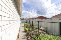 Просторная кухня-гостиная с встроенным кухонным гарнитуром, электроплитой и посудомоечной машиной.Две изолированные комнаты — идеально подходят для отдыха или работы.Большой совмещённый санузел с современными удобствами.Забор с откатными воротами обеспечивает безопасность и приватность участка.По всему периметру выполнена отмостка для защиты фундамента.
