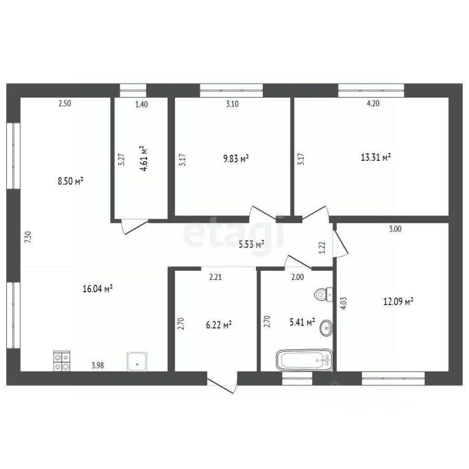 Три изолированные комнаты с продуманными зонами под шкафы-купе. В двух комнатах уже выделены уютные рабочие места с отдельными окнами — готовый кабинет или уголок для школьника.
