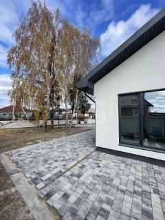 Участок 4.3 сотки уже благоустроен: двор выложен брусчаткой, а его украшением стали пушистые кедры и березы. Здесь есть место и для сада, и для детской площадки, и для зоны отдыха с мангалом.