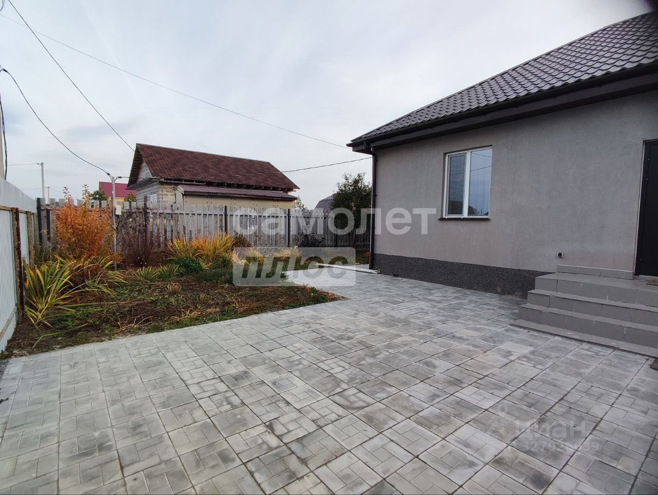 Асфальтированный подъезд к участку и плитка на участке до самого входа в дом создаёт уютное передвижение на машине.