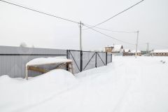 Участок ровный, с забором с лицевой стороны и распашными воротами.