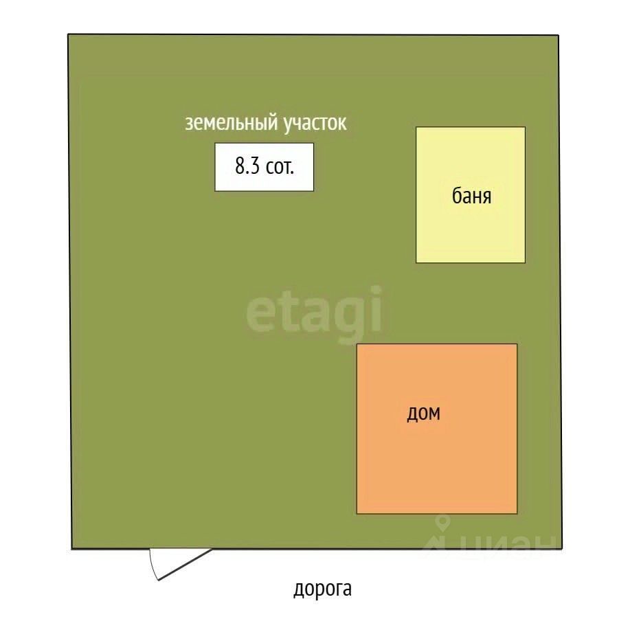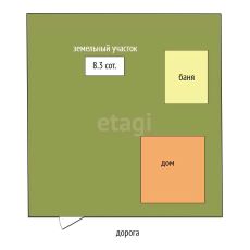 Земельный участок 8,3 сотки правильной формы, огорожен со всех сторон, расположен двухэтажный дом из керамзито бетонных блоков площадью 77м2, отопление печное, электричество заведено в дом, водоснабжение скважина, жаркая баня, состояние отличное!