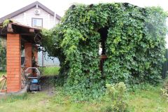Участок полностью освоен, на нем высажены плодовые деревья и ягодные кустарники, включая яблони, сливы, груши, малину и клубнику.
