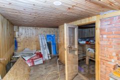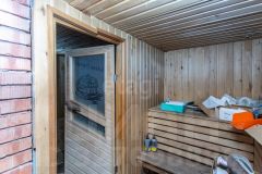 К дому пристроена настоящая баня из того же надежного керамзитоблока! Это не просто отдельное строение, а часть дома с двумя входами: парадным — с улицы, и тайным — прямо из дома. Истопил баньку, попарился — и нырнул в тёплый дом. Зимой это ощущается как настоящая роскошь!