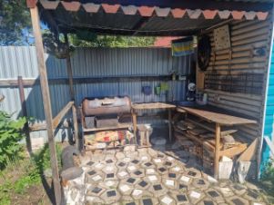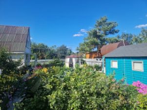 Земля очень хорошая. Все растет отлично. На участке теплицы, туалет, сарай. По периметру участка забор из профлиста. Дом и земля в собственности.