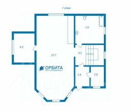 На первом этаже: просторная кухня гостиная и кабинет с гардеробом. Большая ванная комната.