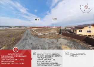 Поселок активно развивается: большинство соседних участков уже застроено, что подтверждает перспективность локации. Безопасность жителей обеспечивается шлагбаумом на въезде и системой видеонаблюдения. Ближайшие магазины, школа и медицинский пункт находятся в 5 минутах езды, а до города можно добраться за 20 минут.