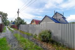 Участок огорожен забором из проф листа. Дом иделен для круглогодичного проживания а так же для использования под дом выходного дня