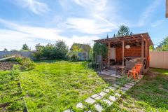 На участке оборудована система водоотведения, На заднем дворе есть зона барбекю и шикарная беседка, посажены и плодоносят плодовые деревья и ягодные кустарники. Передний двор выложен брусчаткой для красоты и комфорта, есть зона для парковки.