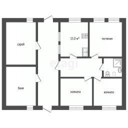 Дом площадью 120 м.кв. со всеми коммуникациями внутри. Водоснабжение и газ - централизованные, отопление газовое. септик на 12 м.куб. Дом добротный, теплый. Включает в себя просторную кухню (15 м.кв, гостиную, две спальни и санузел на первом этаже, а также спальню на втором этаже. Имеется баня, летняя кухня, гараж, подполья, миловидная беседка и хозяйственные постройки. Дом мебелирован и оснащен добротной современной техникой, которые могут остаться в дар новым хозяевам.