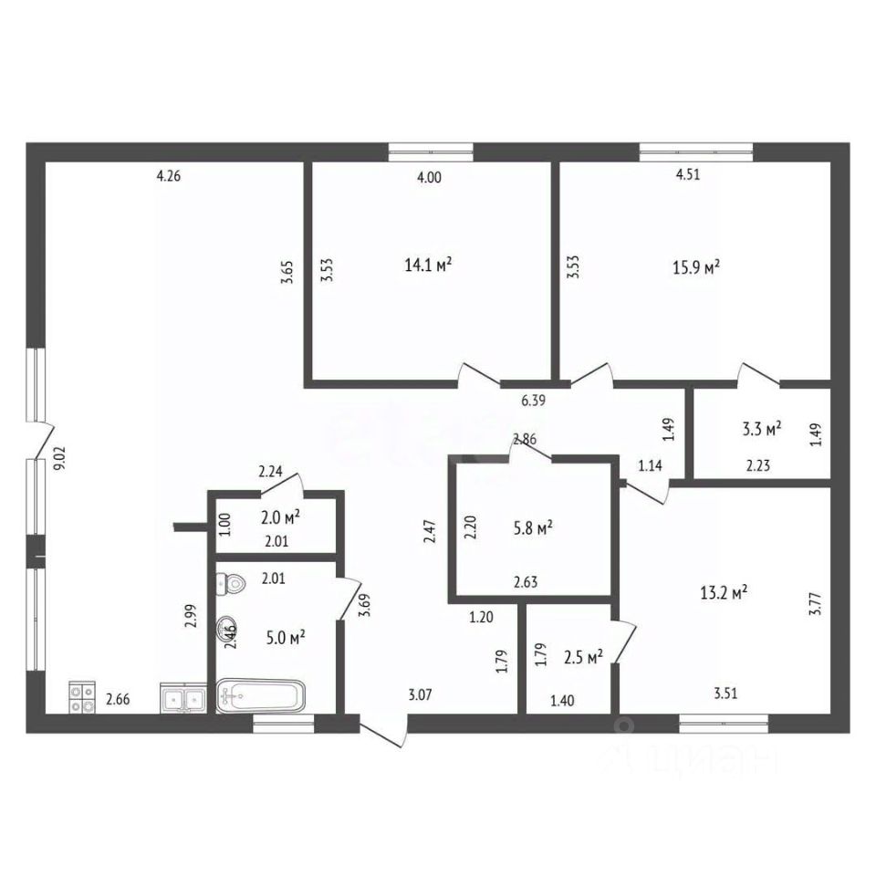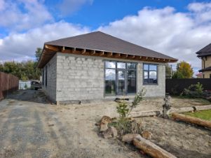 Дом общей площадью 117,5 м² размещён на территории размером 9 соток. Представляет собой одноэтажное строение с высокими потолками и просторными комнатами, обеспечивающими свободу творчества и комфорт проживания.