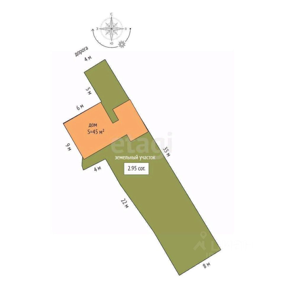Дом на два хозяина с отдельным входом, общей площадью 45 кв.м. и участком в 3 сотки.