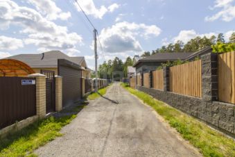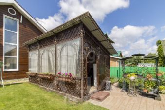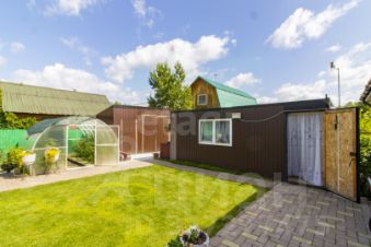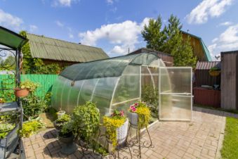 Благоустроенный участок правильной формы имеет реализованный ландшафтный дизайн с плодовыми и декоративными растениями. На территории оборудована парковка под навесом с въездными воротами на пульте управления. К дому пристроена закрытая утепленная беседка с мангальной зоной, за которой расположена хозяйственная часть с теплицей на автополиве. Дополнительные постройки включают дровяник, мастерскую, а также жилой вагон-бытовку, который можно использовать как гостевой дом с весны до осени.