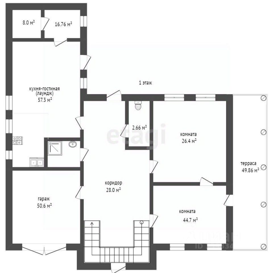 1этаж: кухня, гостиная, санузел, кладовая, котельная, постирочная, гараж, баня.