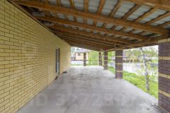 Дом построен из керамзитоблока на ленточно-свайном фундаменте, утеплен пеноплексом и облицован кирпичом.