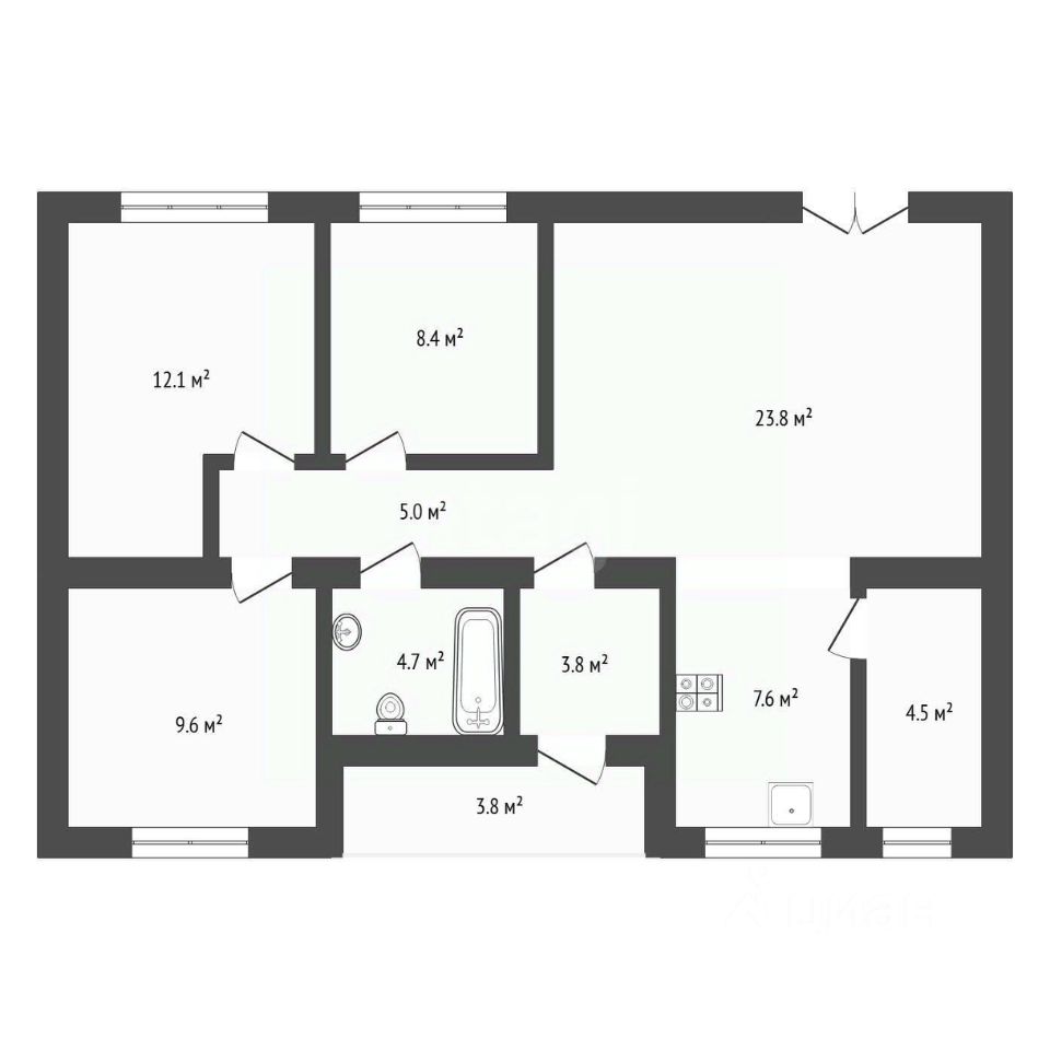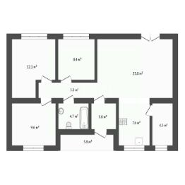Общая площадь дома 80,4 кв.м. Проектом предусмотрено 3 спальных комнаты, 2 санузла, один из которых с акриловой ванной и душем. А также котельная и просторная кухня-гостиная с выходом на открытую террасу S=17,1 кв.м.