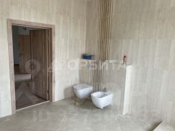На втором этаже и в цокольном этаже сделан ремонт (2021 г). На первом этаже - улучшенная черновая отделка (стены оштукатурены, выполнена стяжка пола).Все коммуникации заведены в дом, выполнена разводка: газ, эл-во, отопление, теплые полы в цокольном этаже, централизованное водоснабжение и канализация.В доме 7 комнат, большая кухня-столовая, 2 ванные.Большая площадь остекления делает дом очень светлым. Столовая расположена в зоне с большими окнами от самого пола, которые открывают панорамный вид на деревню, поля и лес.На территории участка, помимо коттеджа, также располагается готовый к проживанию гостевой дом со свежим ремонтом и мебелью.Помимо централизованных коммуникаций, дополнительно, в гостевом доме есть скважина (18 м) и септик (10 куб).Выполнена разводка информационных коммуникаций: домофон, тв, телефон (в основном доме и в гостевом).