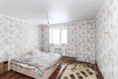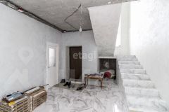 - На первом этаже вас ждут тамбур с двумя тёплыми дверями, просторный коридор, котельная, кладовая, ванная, кухня и отдельная комната. Монолитная лестница ведёт на второй этаж.