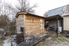 На участке есть баня, 2021 года постройки, размером 3м на 2 м. , навес 4м на 4м, теплица и уличный туалет.