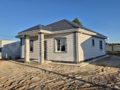 Внутри будет выполнена улучшенная отделка (подготовка для чистового ремонта). Электричество 380 в., скважинное водоснабжение, канализация - септик. Теплые окна с тройным стеклопакетом, входная дверь с терморазрывом.