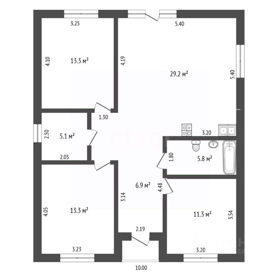 Дом состоит из трёх спален, просторной кухни-гостиной со своим выходом во двор, совмещённого санузла, котельной и прихожей.