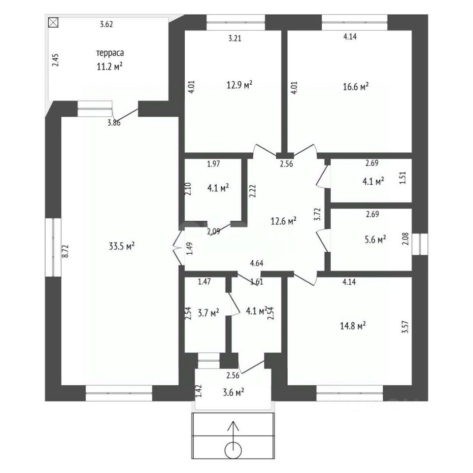 Три изолированные спальни: 13,5, 14,2 и 15,8 м²