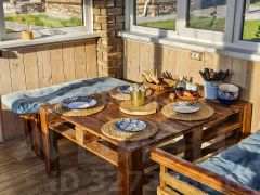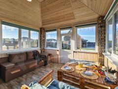 Конструкция дома выполнена из просушенного пиломатериала, прошедшего специальную обработку, что обеспечивает надежность и долговечность. Утепление стен плотной минеральной ватой толщиной 200 мм и ленточный фундамент с буронабивными сваями гарантируют отличные теплоизоляционные свойства.