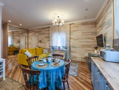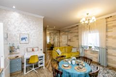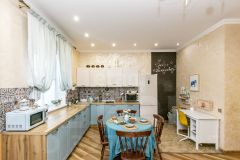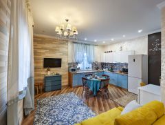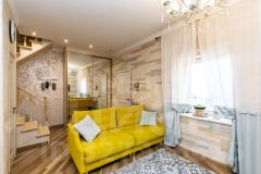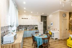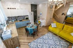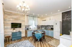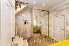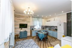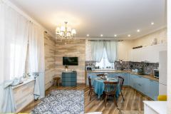 Внутренняя отделка выполнена по индивидуальному дизайн-проекту, сочетая элементы классического стиля с современным Арт-деко. Забудьте о холодных полах — на первом этаже установлен теплый пол, который создаст комфортную атмосферу для ваших ног. Высокие потолки дарят ощущение простора и легкости, а качественная мебель, техника и шторы остаются в доме, что позволяет вам сразу же заехать и наслаждаться жизнью.