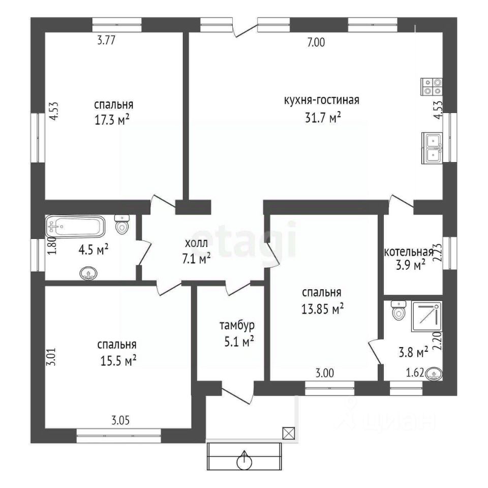 Фундамент — монолитный, что обеспечивает максимальную устойчивость, а крыша из металлочерепицы и современная водосточная система защитят ваш дом от непогоды. Одним из главных преимуществ этого коттеджа является его продуманная и функциональная планировка, которая создана для комфортной жизни. Здесь всё сделано с заботой о вашем удобстве: качественные стеклопакеты и москитные сетки обеспечат тишину и защиту от насекомых, а надежная входная дверь с терморазрывом добавит безопасности.