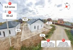 На земельном участке площадью 4 сотки расположен уютный дом общей площадью 86 кв.м. Подъезд к дому можно организовать с двух сторон. Внутри вас ждет современная планировка: просторная кухня-гостиная, две светлые спальни, одна из которых оборудована собственной душевой комнатой — идеальное решение для уединения и комфорта (мастер-спальня). При желании можно возвести перегородку и будет три полноценные комнаты. Также в доме предусмотрены котельная и санузел с душевой, что делает его максимально функциональным.