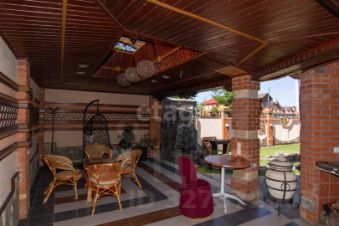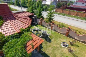 На участке выполнен ландшафтный дизайн с красивым фонтаном , цветниками и хвойниками . Есть место для отдыха с качелями и зоной барбекю . В летнем домике есть зона приготовления еды.
