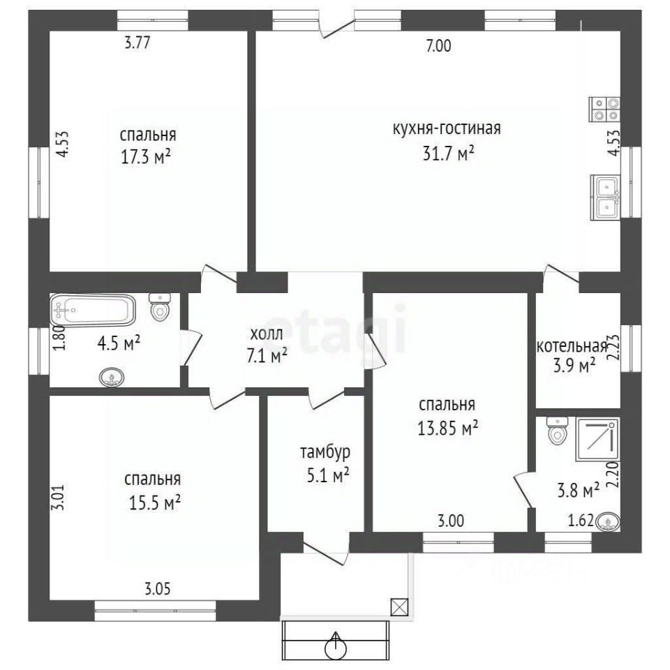Одним из главных преимуществ этого дома является его продуманная и функциональная планировка, которая обеспечивает максимальное удобство для вашей семьи. Внутри установлены качественные стеклопакеты и москитные сетки, а входная дверь с терморазрывом гарантирует тепло и безопасность. Внутренняя отделка выполнена в улучшенном черновом варианте, что позволяет вам завершить ремонт по своему вкусу. Газовое отопление, теплый пол по периметру и современный газовый котел последнего поколения обеспечат вам комфорт в любое время года.