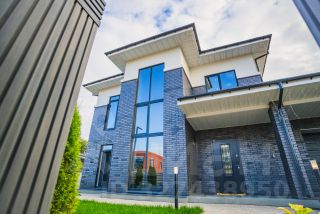 Современный, статный, архитектурно выразительный дом, который выглядит дорого и солидно.