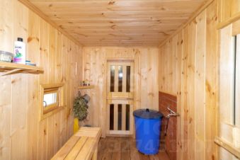 Инженерные системы включают основное газовое отопление с запасным электрическим котлом, центральное водоснабжение и септик. Благоустроенная территория имеет правильную прямоугольную форму, на ней расположены: новый хозяйственный блок 30 кв. м, баня, теплица и беседка для отдыха.