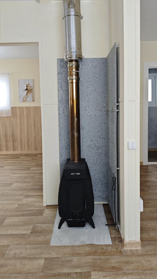 Дом отапливается электрическими конветорами. Дополнительно в доме есть дровяная печь. 3х-камерные стеклопакеты.