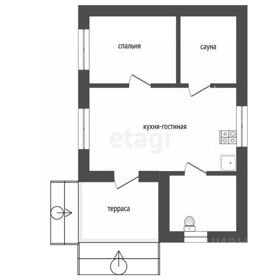 Просторная кухня-гостиная,сауна, санузел совмещен,спальная /комната отдыха.